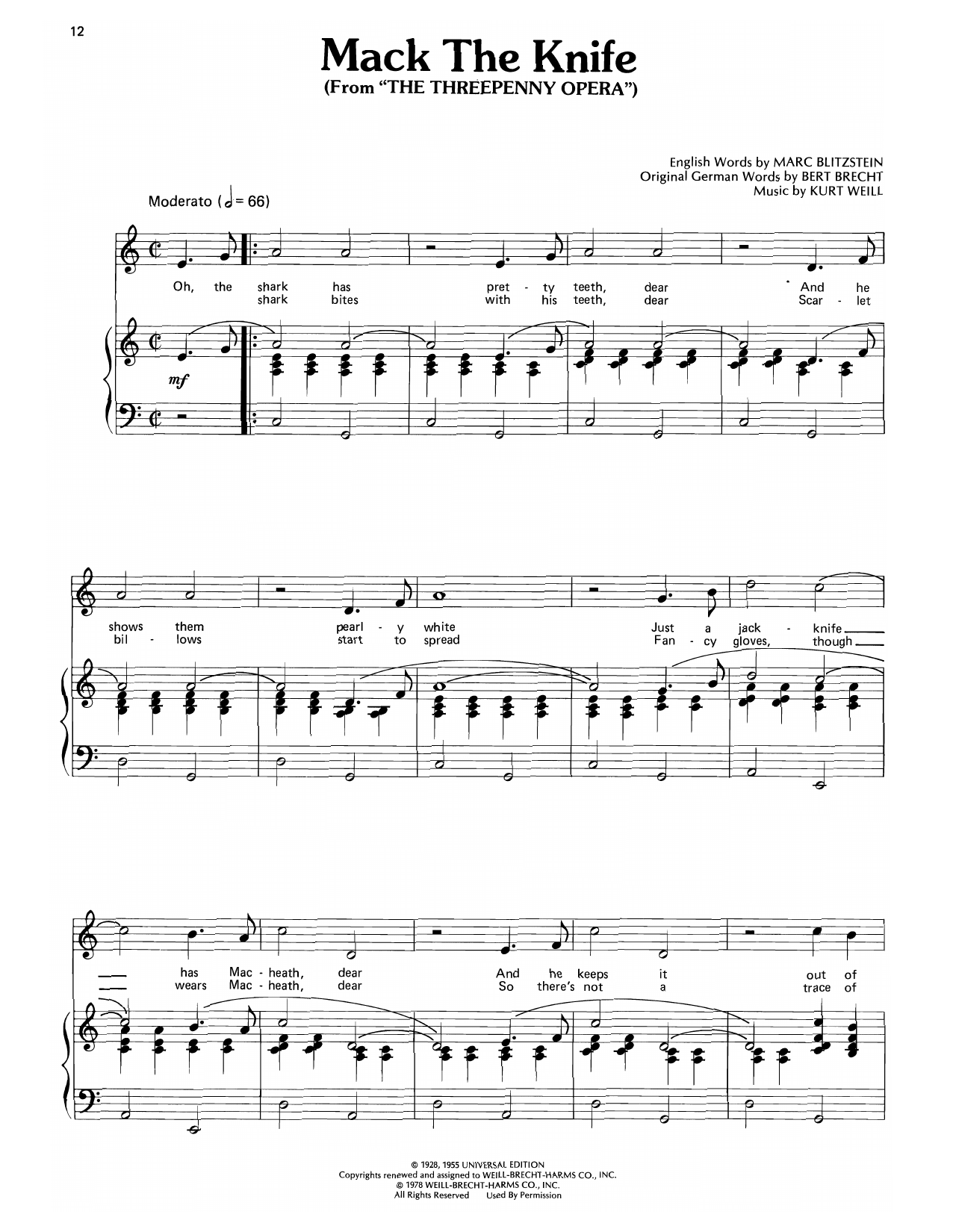 Please note: once you purchase digital Mack The Knife (from The Threepenny Opera sheet music you will need to transpose again, since this is only a sample version.