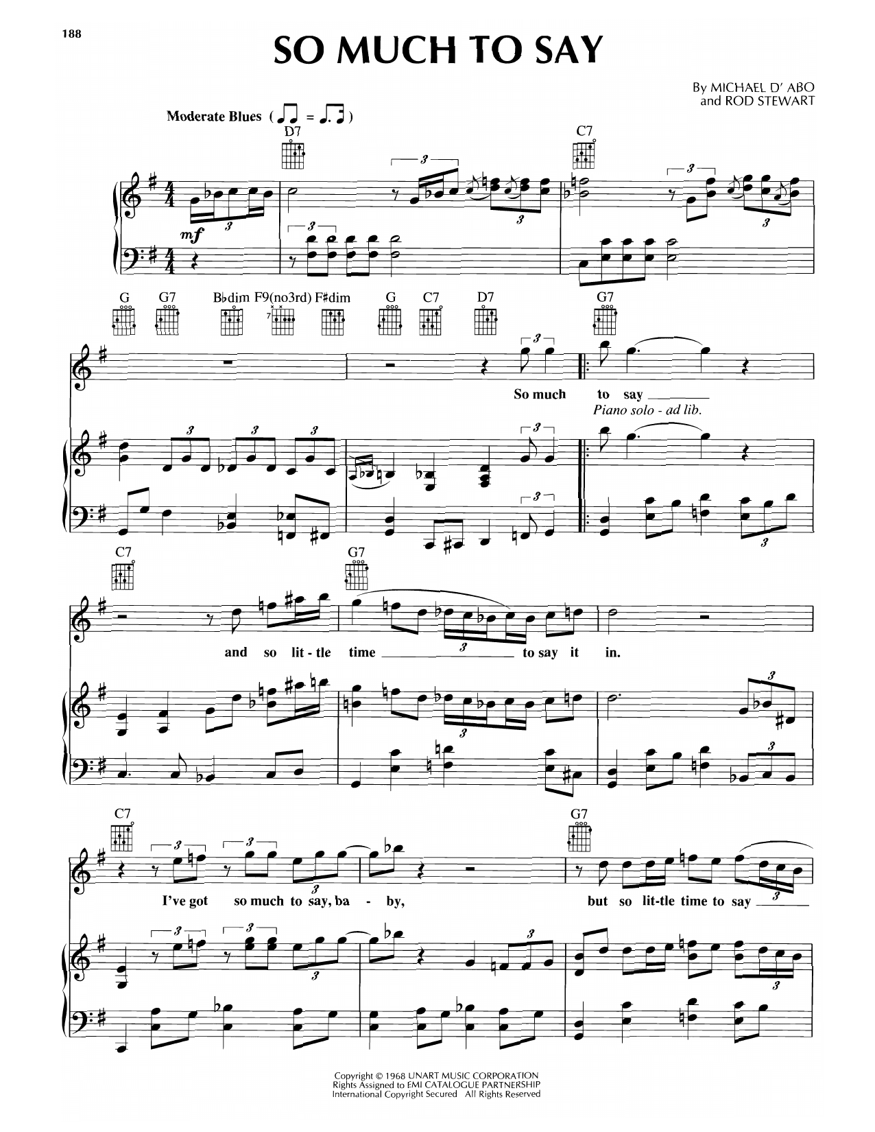 Download Rod Stewart So Much To Say sheet music, chords and digital score arranged for Piano, Vocal & Guitar Chords (Right-Hand Melody). This Rock score includes 3 page(s).